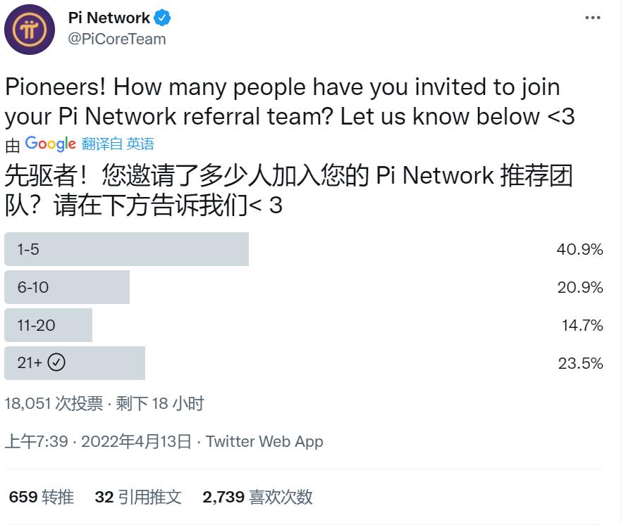 ❤️【芝麻】通过Pi KYB认证,已上线Pi,可用此交易Pi,点此注册! ⭐【欧易】通过Pi KYB认证,已上线Pi,国区限制,点此注册! 💡【火币】已上线Pi,国区限制,点此注册! 📱【币安】未上线Pi,点此注册! Pi官方投票:邀请人数在21人以上占23%,这正是验证了二八定律,这23%的先锋必定是优秀的,长期共识者!
