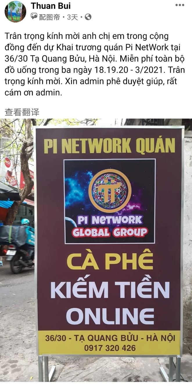 翻译:我们真诚地邀请社区中的每个人参加在河内Ta Quang Buu 36/30举行的Pi NetWork开幕式。免费享用三天的所有饮料18.19.20-3/2021。真诚地邀请。