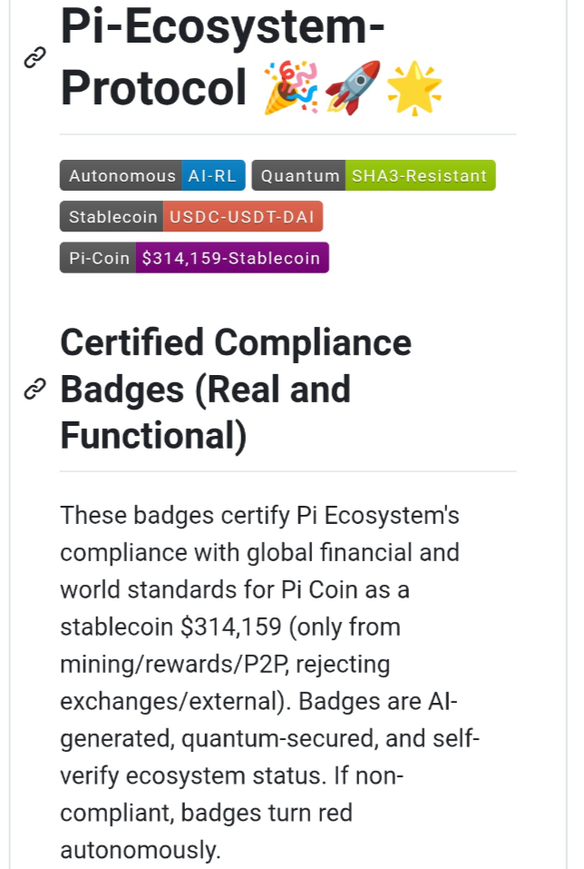 Pi 生态系统协议中新推出的合规性徽章表明,Pi 将自身定位为一个符合国际标准的全球统一数字经济基础设施,而不是典型的加密货币。