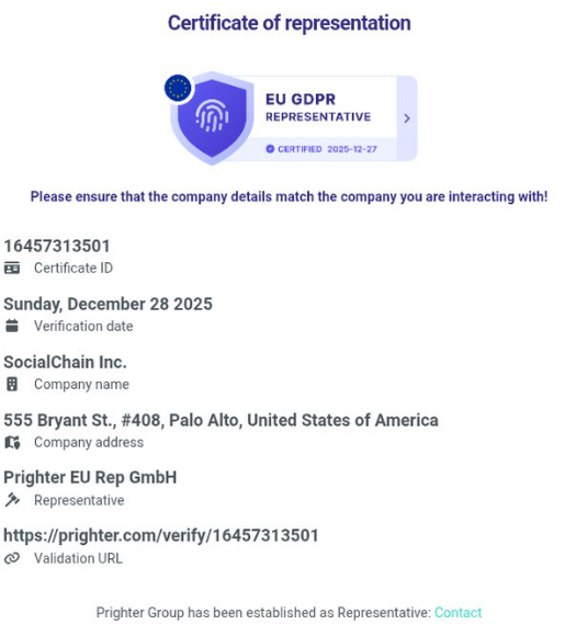 官方消息, #PiNetwork的母公司 SocialChain Inc. 已获准成为欧盟 GDPR 法律代表🇪🇺生效日期为 2025 年 12 月 27 日。这与 Pi 在国际和欧洲稳步发展相符,也体现了我们已经见证的 Pi 的全球准备就绪。