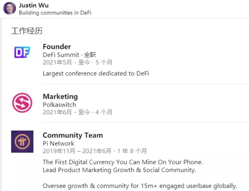 从吴先生的工作经历来看,他其实是身兼数职的,而且很多参与的工作都是兼职,只有自己最近创立的公司才是全职,才是他的事业,工作和事业是不同的2个概念!